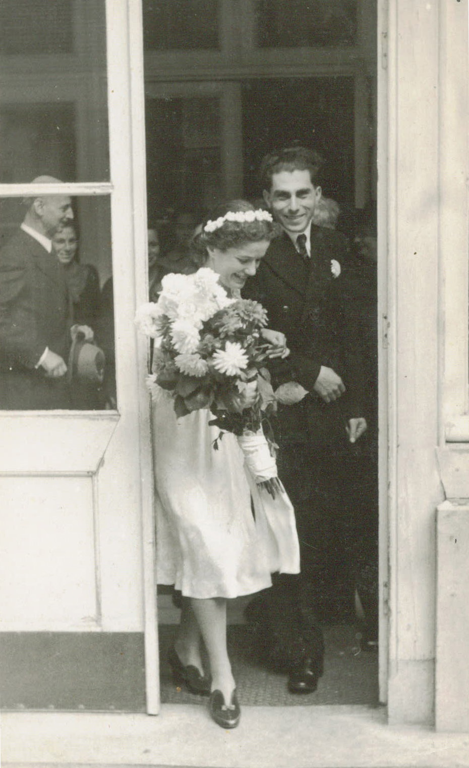 After Germany invaded the Netherlands in May 1940, restrictions were imposed upon Jewish people in ever more rapid succession. In May 1942, they were forced to wear yellow stars. Two months later 'labor call-ups' were issued, followed by mass deportations. Many, including the Frank family, went into hiding. Laureen's family petitioned to have their status re-examined by Hans Calmeyer, a German official, who had to adjudicate 'doubtful cases.' Calmeyer was not a Nazi and more often than not, he decided in favor of petitioners. In January 1943, Laureen's mother was declared non-Jewish, permitting her and her daughters to “shed” their yellow stars and live among Dutch non-Jews. This, after having witnessed so many of their Jewish friends and classmates deported, while a few went into hiding. Laureen’s father, now partially sheltered by his "mixed-marriage," was excused from forced day labor because of an ominous tuberculosis scar on his lungs. The occupiers feared contagion. During the war, Laureen helped care for, and deliver supplies to Jews in hiding, including Rudi, whom she would marry in 1947. Otto Frank, Anne’s father, officiated at their wedding as “best man.”
